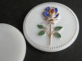 FLros12792  【チェコ・ガラスカボション】花いろいろ・バラ一輪・白に青緑金・大(3.15cm)  500円  在庫 186個