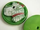 DG063671  【チェコガラスボタン】犬・クリーム色に緑・小(2.25cm)  470円