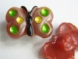BG034307  【チェコガラスボタン】その他の虫たち・蝶・鈍い赤に緑黄・小粒(1.84x1.30cm)  420円