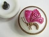 BG064306  【チェコガラスボタン】その他の虫たち・蝶横姿・白に臙脂金・小粒(1.8cm)  340円