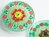 Pt60844  【チェコガラスボタン】模様いろいろ(細密模様)・薄緑透明に赤と黄と緑・大(3.15cm))  450円