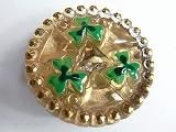Pt61740  【チェコガラスボタン】模様いろいろ・クローバ三つ(金地に緑)・大(3.15cm)  450円