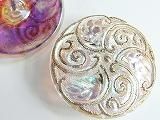 Pt80285  【チェコガラスボタン】模様いろいろ・無色透明金味虹色・特大(3.60cm)  500円