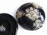 PtGG076396  【チェコガラスボタン】模様(ゴージャス)・黒と金にラインストーン#1・大(3.15cm)  450円