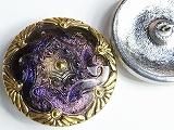 Pt60716  【チェコガラスボタン】模様いろいろ(沢山の渦巻き)・葡萄色に金大(3.15cm)  450円