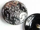 Pt81390  【チェコガラスボタン】模様いろいろ・滑らかな窪み(黒地に銀)・特大(3.60cm)  500円