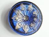 Pt81230  【チェコガラスボタン】模様いろいろ(花びらにラインストーン)・鈍い青・特大(3.80cm)  500円