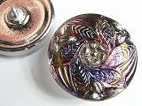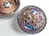2FL0019  【チェコガラスボタン】エーデルワイス・緑紫虹色・中(2.70cm)  400円