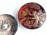 BD100305  【チェコガラスボタン】花鳥風月・赤に銀・中(2.70cm)  400円