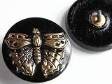 BG023695  【チェコガラスボタン】その他の虫たち・蝶・黒に金・小(2.25cm)  300円