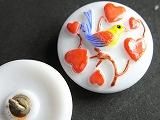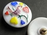 BD053630  【チェコガラスボタン】小鳥とハート・白地にエナメル彩色(青と黄)・小(2.25cm)  300円