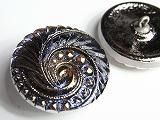 PtWF0335  【チェコガラスボタン】模様(渦巻の羽)・鈍い青・中(2.70cm)  400円