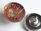 PtWF0023  【チェコガラスボタン】模様(渦巻の羽)・虹色・薄紫と金・中(2.70cm)  400円