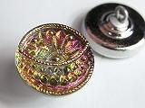 PtWF0016  【チェコガラスボタン】模様(渦巻の羽)・虹色・緑紫と金・中(2.70cm)  400円